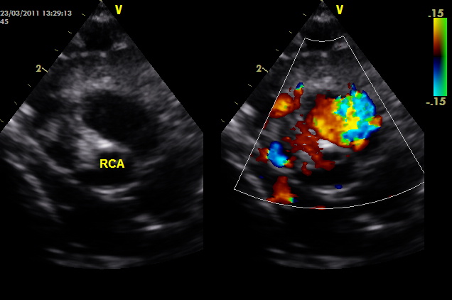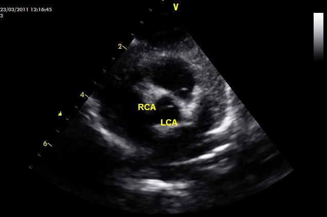 Υπερηχογράφημα (ECHO): φυσιολογική βασική ανατομία, φυσιολογικές διαστάσεις και λειτουργικότητα (συστολική και διαστολική λειτουργία, ελέγχθησαν και με ιστικό Doppler πέραν του συνήθους ελέγχου). Παρακάτω απεικονίζονται τα στεφανιαία. Ελέγχθηκε η έκφυση όχι μόνο με 2D, αλλά και με απεικόνιση της στεφανιαίας ροής με color Doppler (ασυνήθης πρακτική για παιδιά, θα εξηγηθεί ο λόγος στη συνέχεια).
